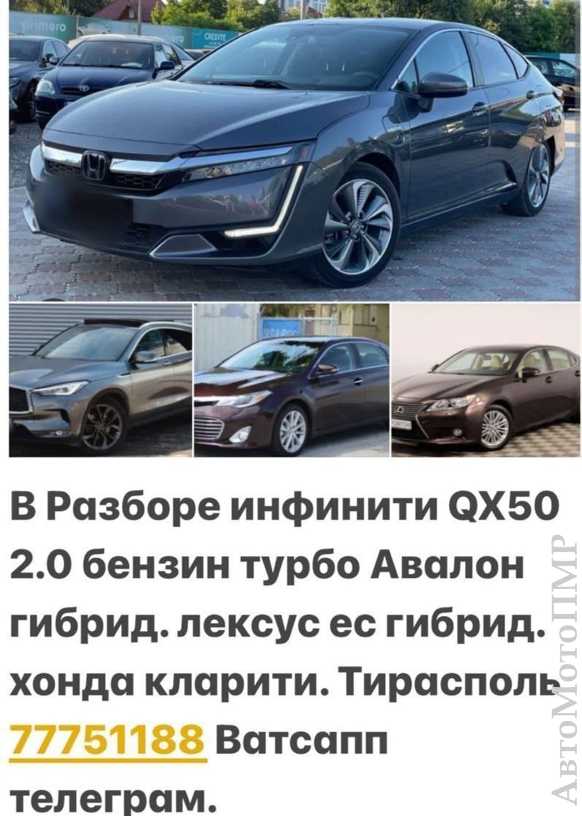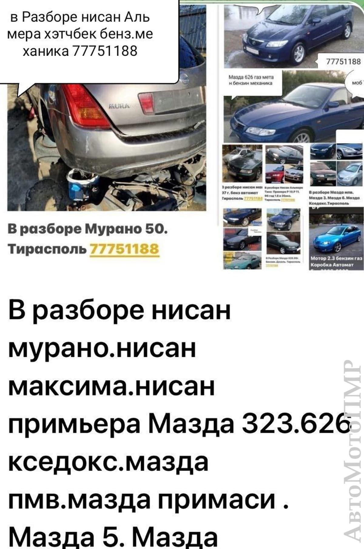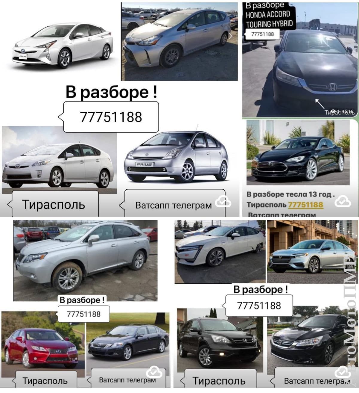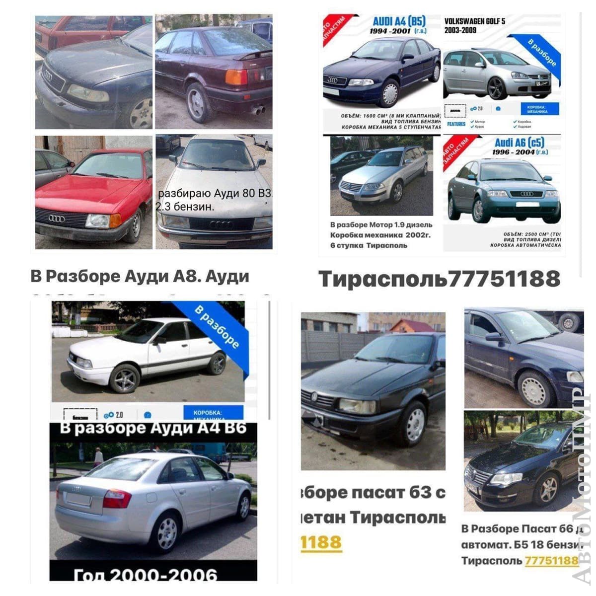В Продаже Большой Ассортимент Запчастей! На Все марки автомобилей!шевроле вольт все модели.вольво хс 90 все марки.форд симак.тайота ярис.ярис версо и тд.мазда примаси.нисан примьера.мазда мпв.и другие мазды.лексус гс.инфинити гс.тайота раф 4.Тайота хайлендер.линкольн мкз.лексус ес.хонда кларити.хонда срв.все приусы.лексус рх.все марки.бмв разборка все модели как новые так и бу.Ауди 80.ауди 100.ауди а4. и тд.Фолксфаген шаран.фолксфаген вента.фольксфаген б3.б4.б5.б6.крайслер вояджер.Мерс 124.мерс с класса.тайота превия.митсубиси галант.митсубиси лансер.шевролет нубира.опель астра.мерс 210.мерседес в разборе 220.211.124.210.208.123 мерседес все в разборе.митсубиси галант.мазда 626.ситроен ксара.митсубиси аутлендер 2004 год.форд фьюжен 13год.тайота приус 20.30.40.50. кузов.мазда мпв.шевроле вольт.тайота корола.мазда кседокс.вольво хс90 16год.хундай туксон 2бензин.форд фокус 3год.хундай сантафе 2006 год.митсубиси грандис.митсубиси аутлендер.дизель и бензин.лексус рх 400 и 350.450.нисан альмеро тино.тайота авенсис версо.корола версо.тайота авенсис дизель и бензин.мазда 3 и мазда 6.лексус рх450ауди а6.форд галакси.лексус рх2001 год.вольво s80.корола верса 2003 год.крайслер вояджер98 год.мазда примаси и тд.ауди80.тайота превия дизель и бензин.опоель омега а.б.опель вектра.опель сигнум.бмв.520.525.и тд.Как новые так и бу.Есть доставка по ПМР! Заказы пишите на ватсап.телеграм.Так-же Под заказ любые запчасти! Продаются ВСЕВАЗМОЖНЫЕ КОМПЛЕКТЫ ДИСКОВ И РЕЗИНЫ! Большой Ассортимент!В Отличном Состоянии!НОВЫЕ и БУ!Есть Колпаки и Запаски!Железные и Легкосплавные! Цены НЕДОРОГИЕ! Можно и Под Заказ! Тирасполь. Возможен Обмен! пишите заказы на Ватсап или Телеграм! Есть всё в Наличии! Также Доставка! Пишите заказы на ватсап.телеграм!!!
